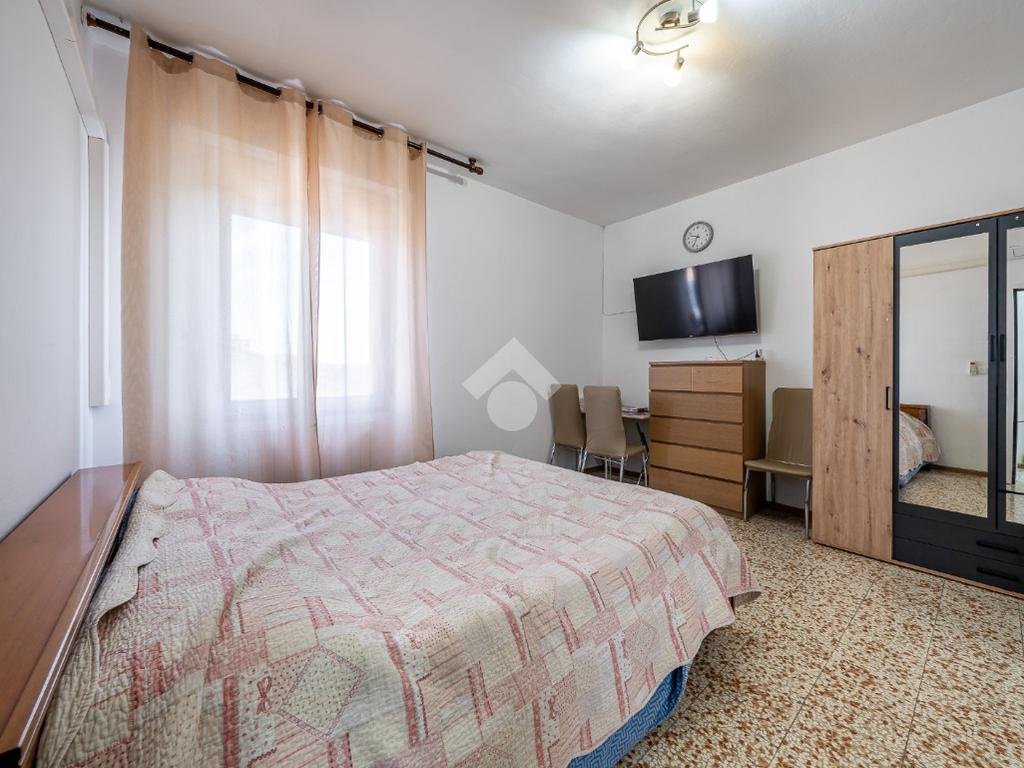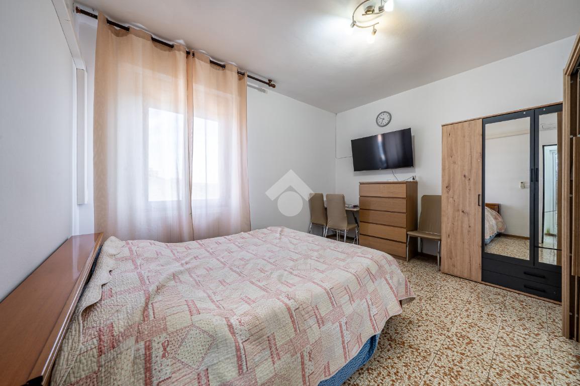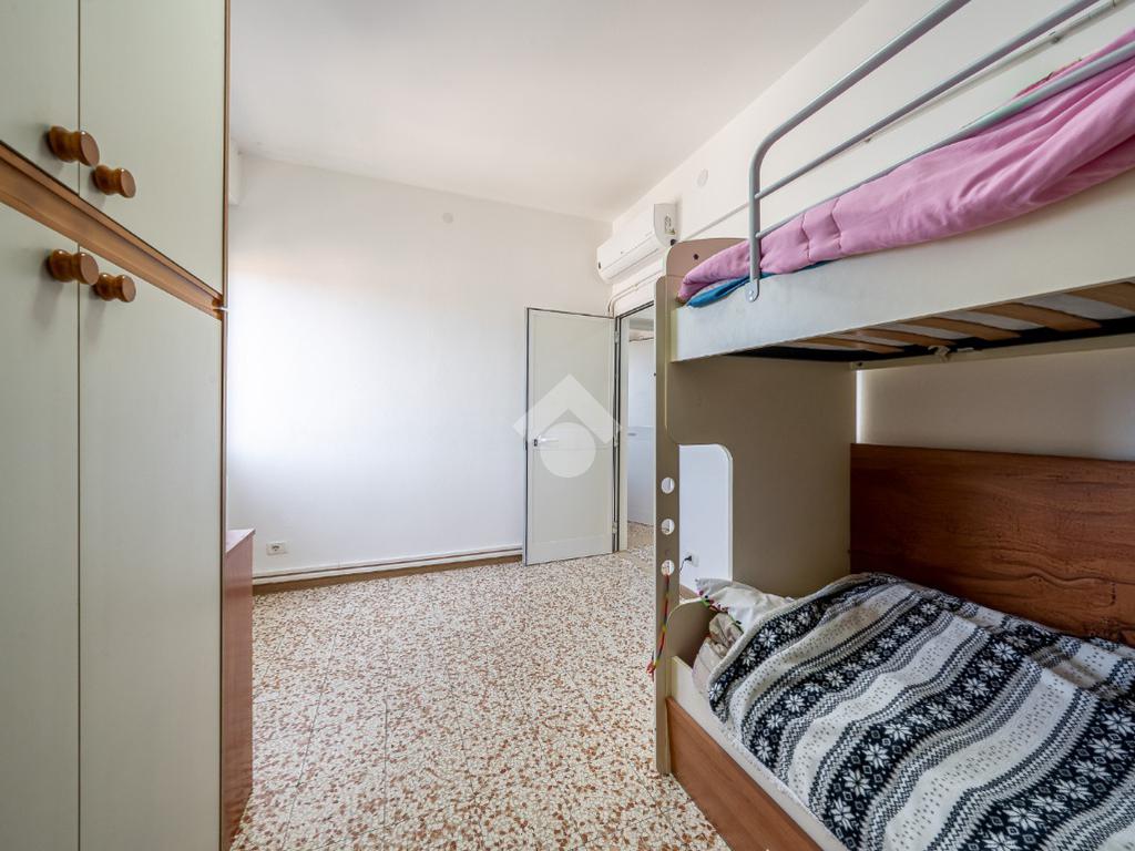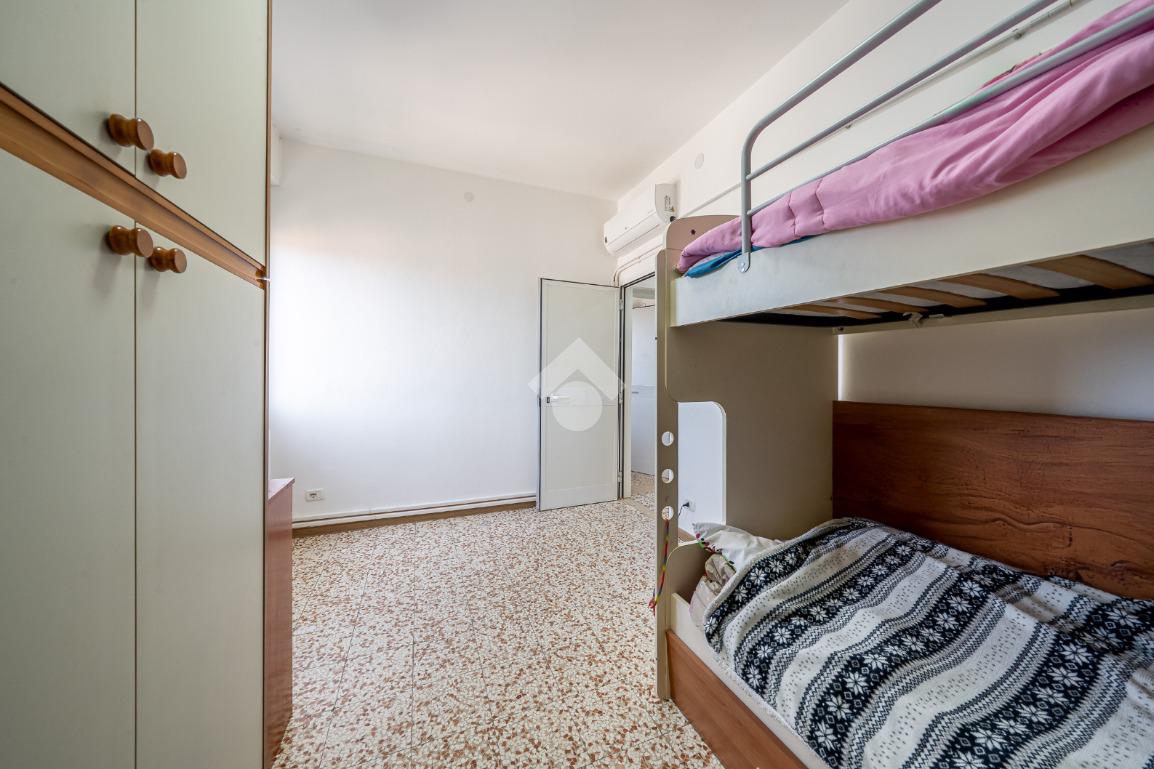 Ingresso su sala, cucinotto, balcone, disimpegno notte, camera ¾, camera matrimoniale e bagno completo finestrato.