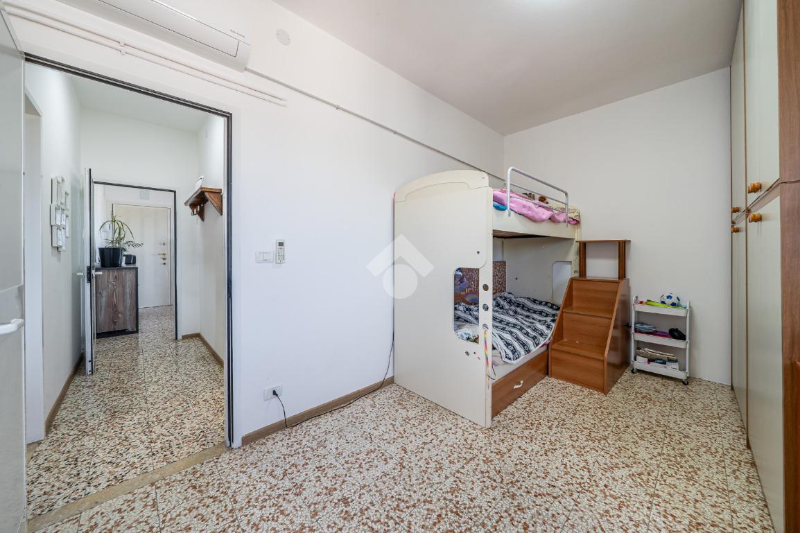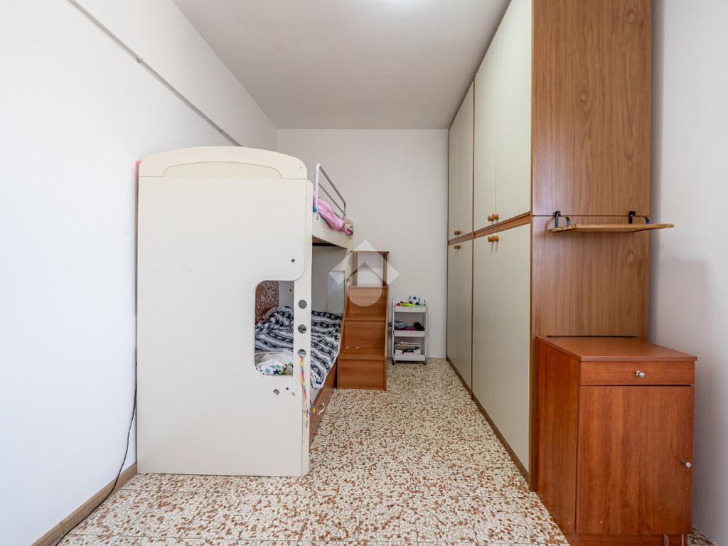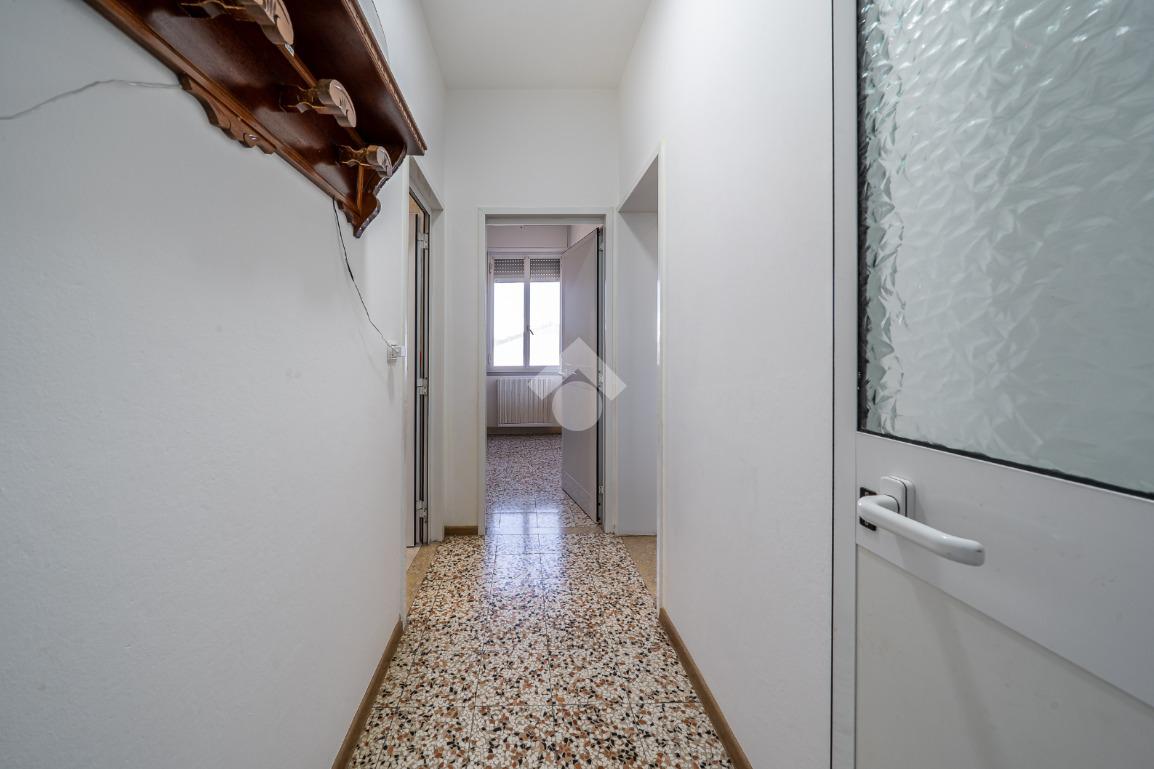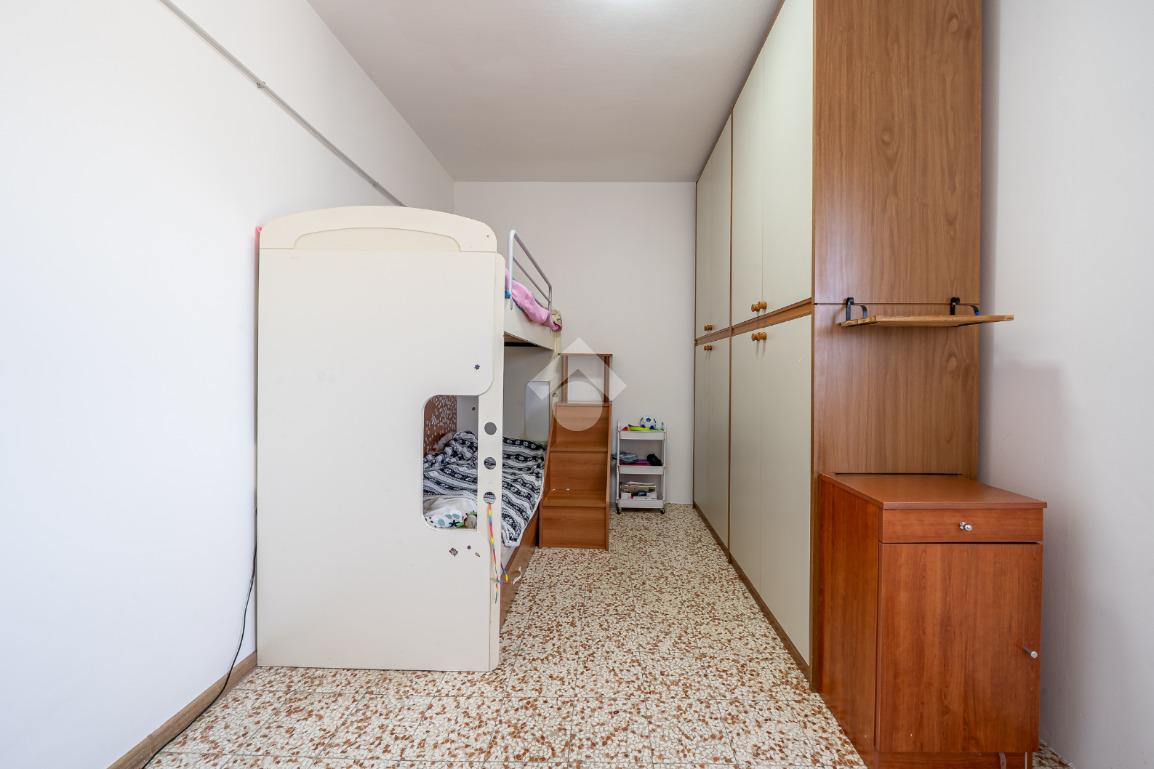 Ingresso su sala, cucinotto, balcone, disimpegno notte, camera ¾, camera matrimoniale e bagno completo finestrato.