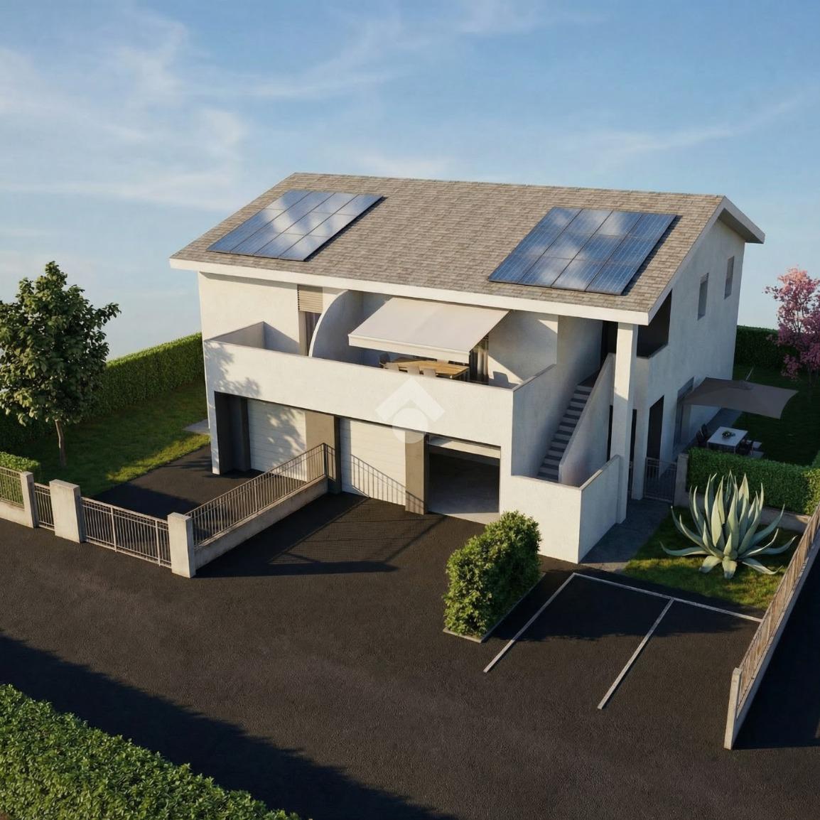 Garage di 23 mq con accesso diretto all’abitazione. Riscaldamento a pavimento con pompa di calore, cappotto termico e serramenti in PVC a basso coefficiente termico per elevato risparmio energetico.